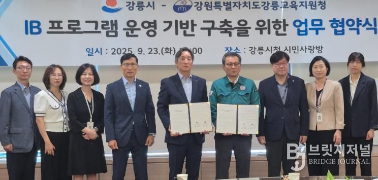 브릿지저널 윤나영 기자 | 강릉교육지원청은 23일 오전 10시, 강릉시청에서 강릉시와 국제 바칼로레아(IB) 교육 프로그램 도입 및 운영을 위한 업무 협약을 체결했다.