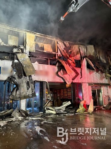 현장에 도착한 무인파괴방수차는 오후 11시 17분부터 가동돼 건물 외벽을 뚫고 2층 내부로 소화용수를 직접 분사했다. 이어 2층의 넓은 면적으로 불길이 쉽게 잡히지 않자, 천장을 뚫어 위쪽에서 방수 통로를 확보하고 내부 연기를 외부로 배출하는 작업을 병행해 소방대원의 안전과 진압 여건을 확보했다.