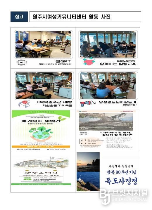 브릿지저널 윤나영 기자 | 원주시여성커뮤니티센터는 9월과 10월 다채로운 교육 프로그램을 운영한다.