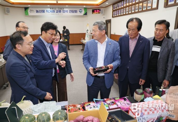 브릿지저널 윤나영 기자 | 고창군이 지난 23일 제주시청을 방문하여, 고창군 우수 농산물 판매활성화 및 지자체간 상생 협력 등 지역 발전 방안을 모색하기 위해 농산물 직거래 교류 협력 간담회를 개최했다.