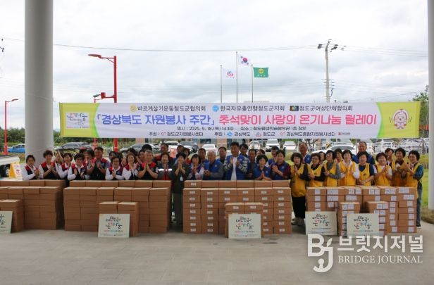 브릿지저널 정보영 기자 | 청도군 자원봉사센터(센터장 홍봉옥)는 지난 18일 청도평생학습행복관에서 바르게살기운동청도군협의회(회장 김수진), 한국자유총연맹청도군지회(회장 조인제), 청도군여성단체협의회(회장 변소영) 3개 단체 자원봉사자 80여명이 참석한 가운데 추석맞이 ‘사랑의 온기나눔 릴레이’에 동참했다.