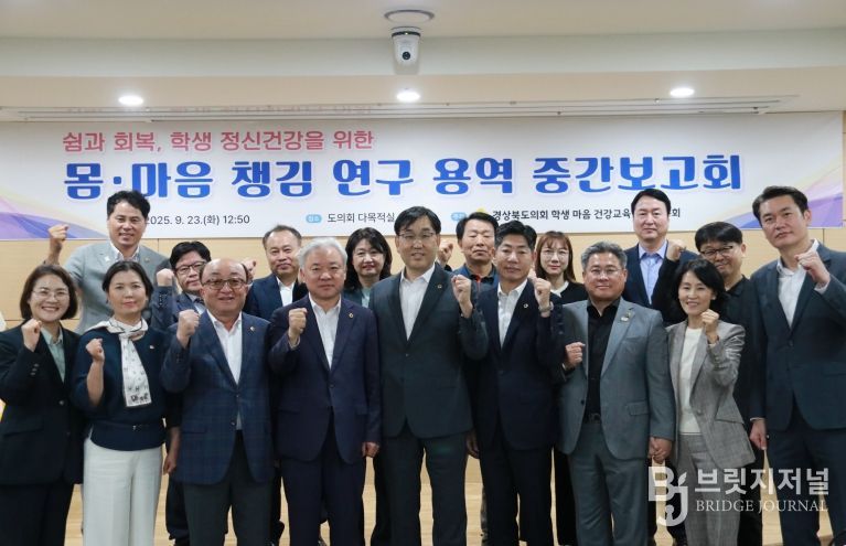 브릿지저널 정보영 기자 | 경북도의회 의원연구모임'경상북도 학생마음 건강교육 정책연구회'(대표 황두영 의원)는 23일(화) 도의회 다목적실에서 '쉼과 회복, 학생 정신건강을 위한 몸·마음 챙김 연구' 중간보고회를 개최했다.