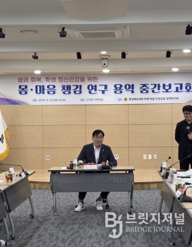 브릿지저널 정보영 기자 | 경상북도의회 '경상북도 학생마음 건강교육 정책연구회' 대표인 황두영 의원(구미2, 국민의힘)은 9월 23일 도의회 다목적실에서 열린 ‘쉼과 회복, 학생 정신건강을 위한 몸·마음 챙김 연구용역 중간보고회’를 주재하며, 학생 정신건강 문제의 심각성을 다시금 환기시켰다.
