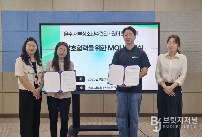 브릿지저널 윤나영 기자 | 울주군시설관리공단(이사장 최인식) 서부청소년수련관은 9월 23일, 자원순환 및 환경 교육 활성화를 위해 ㈜원더플라스틱(대표 김민석)과 업무협약을 체결했다.