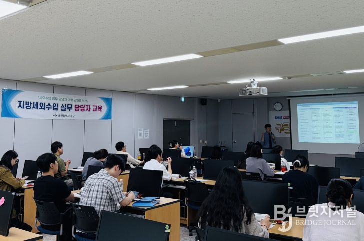 브릿지저널 윤나영 기자 | 울산 중구가 9월 24일 오후 2시 중구 지역정보센터 정보화교육장에서 세외수입 업무 담당자 30명을 대상으로 ‘지방세외수입 실무 담당자 직무교육’을 실시했다.