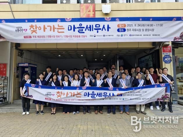 브릿지저널 윤나영 기자 | 원주지역세무사회는 민족 최대 명절인 추석을 맞아 지난 24일 자유시장 등 전통시장 일대에서 ‘추석맞이 전통시장애(愛) 행사’를 실시했다.