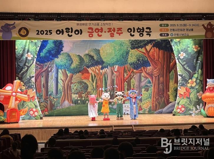 브릿지저널 정보영 기자 | 안동시보건소는 9월 23일, 24일 양일간 안동시민회관 영남홀에서 관내 어린이집 및 유치원생 950여 명을 대상으로 어린이 금연․절주 인형극 공연을 개최했다.