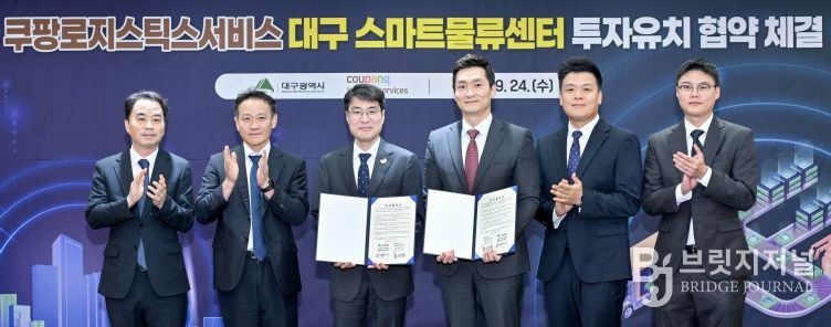 브릿지저널 김진석 기자 | 대구광역시는 9월 24일 오후 4시 30분, 시청 동인청사 2층 상황실에서 국내 택배부문 1위 기업인 ‘쿠팡로지스틱스서비스(유)’(대표 홍용준, 이하 ‘쿠팡로지스틱스서비스’)와 수성알파시티 내 첨단 스마트물류센터 구축을 위한 투자유치 협약을 체결했다.