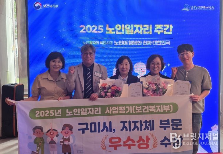 브릿지저널 정보영 기자 | 구미시는 지난 22일 웨스틴 조선호텔에서 열린 보건복지부 주최 노인일자리 주간 기념식에서 ‘2025년 노인일자리 및 사회활동 지원사업 종합평가’ 기초지자체 부문‘우수상’을 수상했다.
