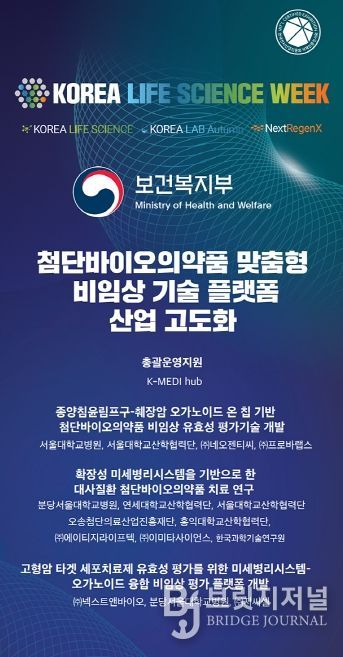 브릿지저널 김진석 기자 | K-MEDI hub가 오는 30일 오후 1시 서울 코엑스 3층 D홀에서 ‘MPS 기반 첨단바이오의약품 비임상 평가기술 및 제품개발 컨설팅 및 세미나’를 개최한다.