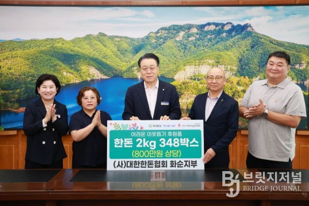 브릿지저널 김경미 기자 | 화순군은 지난 24일 추석 명절을 맞이하여 대한한돈협회 화순지부(지부장 박용완)에서 800만 원 상당의 한돈(2kg) 348박스를 기부했다고 밝혔다.