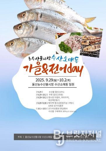 브릿지저널 윤나영 기자 | 울산 남구는 9월 29일부터 10월 2일까지 나흘간 남구 제5호 골목형상점가로 지정된 울산농수산물시장 수산소매동에서‘가을&전어day’축제를 개최한다고 밝혔다.