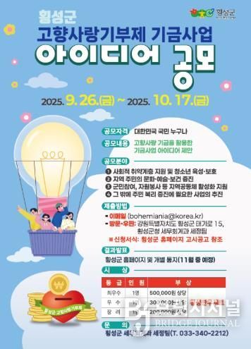 브릿지저널 윤나영 기자 | 횡성군이 군민과 국민이 함께 만드는 지속가능한 지역 발전을 위해'고향사랑기부제 기금사업 아이디어 공모'를 진행한다.