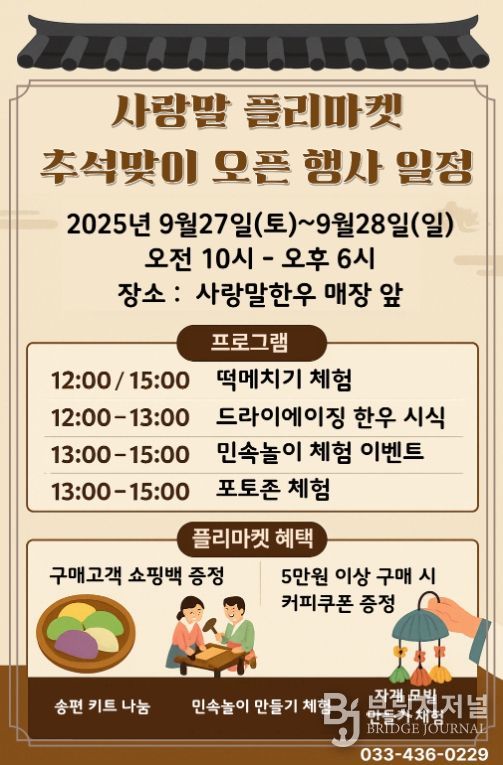 브릿지저널 윤나영 기자 | 홍천군은 지난해 ‘농촌마을 활력 프로젝트’에 선정된 (재)홍천한우사랑말이 ‘사랑말 플리마켓’을 9월 27일부터 개최한다고 밝혔다.