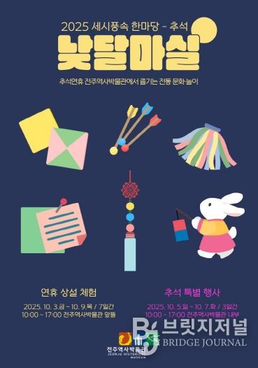 브릿지저널 윤나영 기자 | 전주시는 전주역사박물관과 어진박물관에서 추석 연휴를 맞아 박물관을 찾는 관람객들을 위해 오는 10월 3일부터 9일까지 추석맞이 체험 프로그램을 운영한다고 29일 밝혔다.