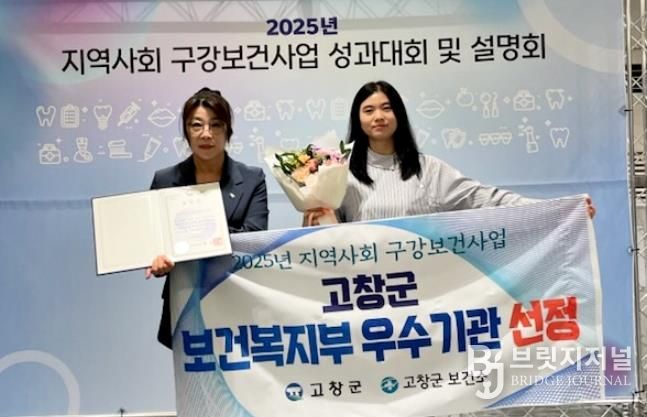 브릿지저널 윤나영 기자 | 고창군이 26일 서울 피스앤파크 컨벤션 파크홀에서 열린 ‘2025년 지역사회 구강보건사업 성과대회’에서 우수기관으로 선정되어 보건복지부 장관 표창을 수상했다.