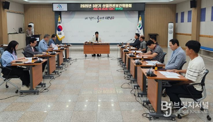 대전 대덕구는 26일 구청 대회의실에서 사용자 대표 노기수 부구청장과 근로자 대표 등 위원 15명이 참석한 가운데 ‘2025년 3분기 산업안전보건위원회’를 개최했다고 밝혔다.
