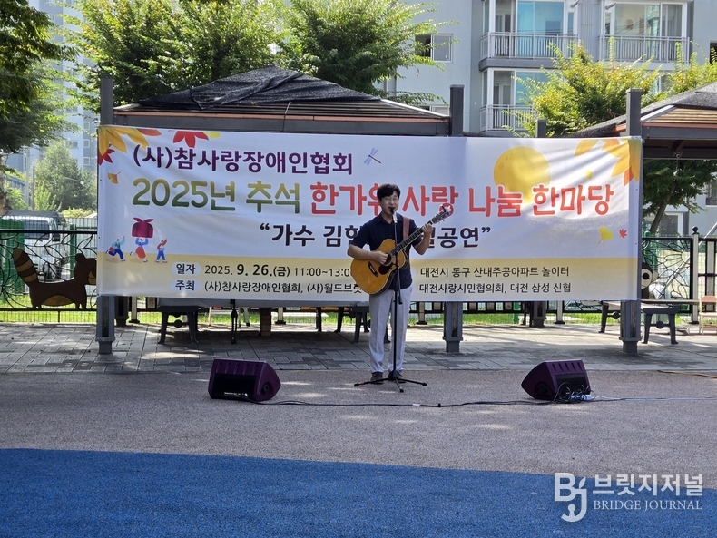 사단법인 참사랑장애인협회(회장 김춘두)와 사단법인 월드브릿지(대표 최용선)는 지난 19일(금)에 이어 두 번째로 대전 동구 산내주공아파트에 거주하는 어르신과 장애인 300명을 모시고 추석 한가위 사랑 나눔 한마당 잔치를 벌였다.