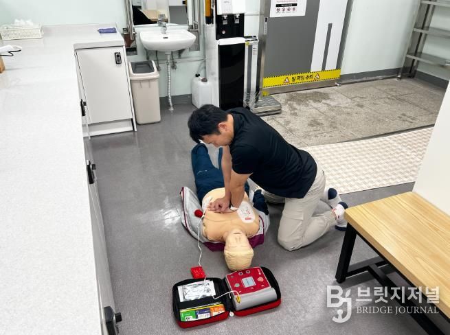 이번 훈련은 이용자가 남자 탈의실 내에서 심정지로 쓰러진 상황을 가정하여 진행됐으며, 실제상황 못지 않은 긴장감 속에서 신속한 초기 대응과 협력 체계를 점검하는 계기가 됐다.