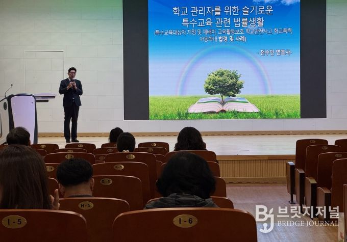 연수는 △기타리스트 김지희의 ‘스토리텔링 장애공감 콘서트’ △법무법인 클래식 전수민 변호사의 ‘학교관리자를 위한 통합교육 지원 관련 법률의 이해와 실천’ 특강으로 진행됐으며, 참여자들은 통합교육의 의미와 현장 적용 방안을 함꼐 고민하는 시간을 가졌다.