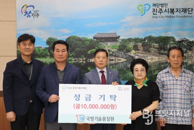 이번 성금은 국방기술품질원 임직원들의 자발적인 나눔으로 조성된 것으로, 진주시복지재단을 통해 독립유공자 후손과 보훈단체, 지역 내 어려운 이웃 지원에 사용될 예정이다.