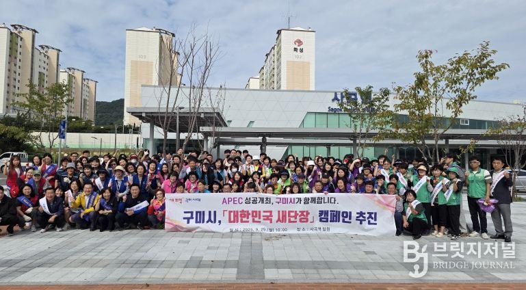 브릿지저널 정보영 기자 | 구미시는 지난 29일 사곡역 일원에서 ‘대한민국 새단장’ 캠페인을 전개하며 추석 명절과 10월 APEC 정상회의를 앞두고 도시환경 정비에 나섰다. 이번 행사에는 행정안전국장을 비롯해 지역 도·시의원, 이통장협의회, 주민단체 등 150여 명이 참여해 성황을 이뤘다.