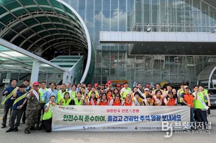 브릿지저널 정보영 기자 | 구미시는 한가위를 맞아 9월 29일 구미역 일원에서 ‘제334차 안전점검의 날’ 캠페인을 펼쳤다. 이날 행사에는 재난안전네트워크 회원 100여 명이 참여해 귀성객과 시민들에게 생활 속 안전수칙을 알렸다.