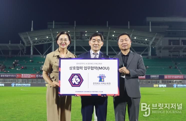 브릿지저널 김경미 기자 | 충청북도교육청 직속기관인 국제교육원은 지난 27일 저녁, 청주종합운동장에서 충북청주프로축구단과 이주배경 학생들의 스포츠 문화체험 확대 및 협력 활성화를 위한 업무협약을 체결했다고 밝혔다.