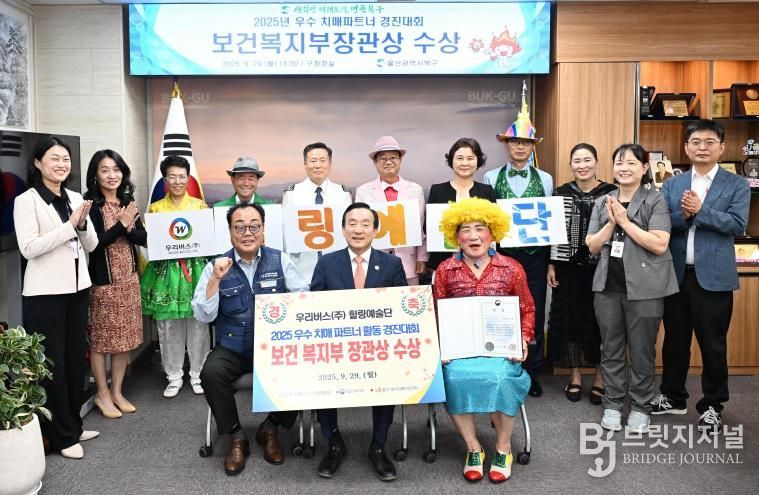 브릿지저널 윤나영 기자 | 울산 북구치매안심센터는 보건복지부가 주최한 2025년 우수 치매파트너 활동 경진대회에서 우리버스(주)가 단체 부문에서 보건복지부 장관상을 수상했다고 29일 밝혔다.