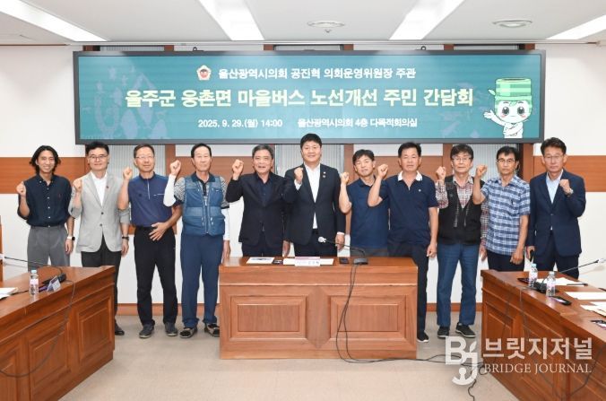 브릿지저널 윤나영 기자 | 울산광역시의회 공진혁 의원(의회운영위원장)이 29일 오후 울주군 웅촌면 주민들이 겪는 대중교통 불편을 해소하기 위한 간담회를 개최했다.