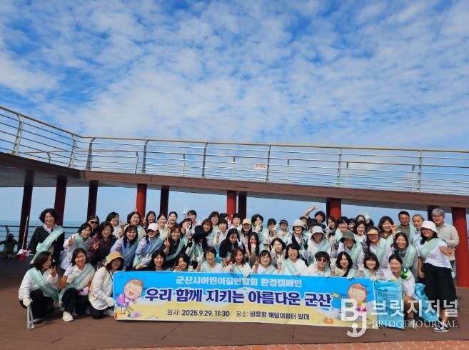 브릿지저널 윤나영 기자 | 군산시어린이집연합회가 지난 29일 새만금 해넘이 쉼터에서 해양 생태 보존과 환경보호를 위한 캠페인을 실시했다.