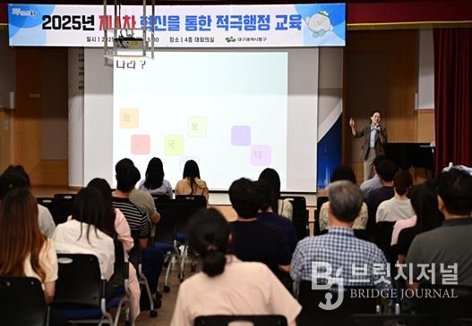 브릿지저널 김진석 기자 | 대구 동구청은 지난 26일, 동구 소속 공무원과 (재)동구문화재단 직원 포함 80여 명을 대상으로 ‘제1차 혁신을 통한 적극행정 교육’을 실시했다.