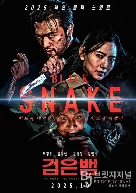 브릿지저널 김경미 기자 | 10월 개봉을 확정한 영화 '검은뱀'이 2025년을 사로잡은 고자극 액션 영화의 계보를 이을 기대작으로 주목받는다.[감독 : 박도환 | 출연 : 부정우, 김화인, 문영동, 김민기, 기주봉 외 | 제작 : 케이스타 | 배급 : ㈜이놀미디어 | 등급 : 청소년관람불가]