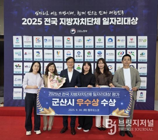브릿지저널 윤나영 기자 | 군산시가 30일 청주오스코에서 열린 고용노동부 주관 ‘2025년 전국 지방자치단체 일자리 대상’에서 3년 연속 일자리 공시제 부문 우수상(장관상)을 수상했다.
