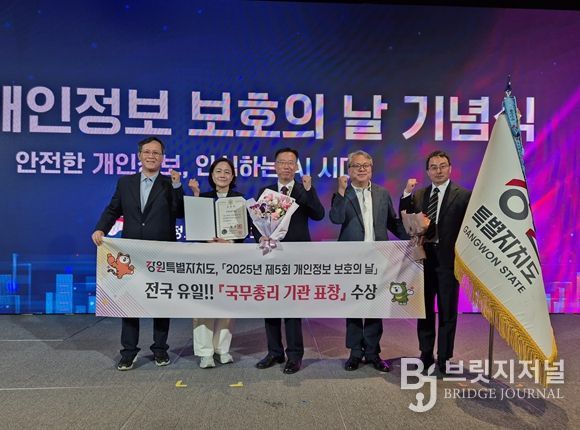 브릿지저널 윤나영 기자 | 강원특별자치도는 2024년 '개인정보 보호수준 진단평가'에서 최고 등급인 ‘에스(S)등급’을 달성하며, 전국 1,426개 중앙행정기관․지자체․공공기관 중 유일하게 국무총리 기관 표창을 수상했다고 밝혔다.