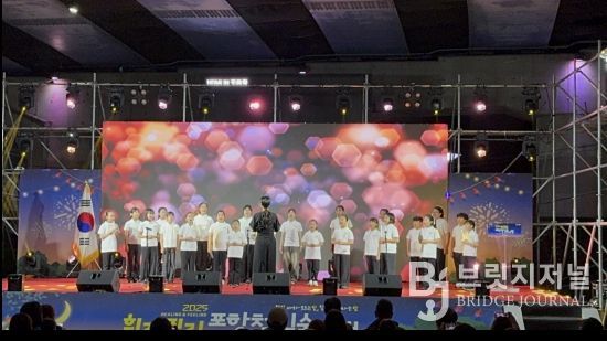 브릿지저널 정보영 기자 | 포항시청소년재단 소속 포항시청소년합창단이 지난 26일 열린 ‘2025 힐링필링 포항철길숲야행’ 개막식에서 식전 공연을 펼쳐 관객들에게 깊은 감동을 전했다.