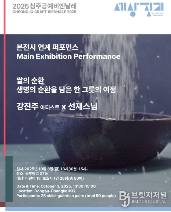 2025 청주공예비엔날레 본전시와 연계한 이번 프로젝트는 쌀을 매개로 생명의 순환과 공동체에 대한 천착을 담아온 작가 강진주와 사찰 음식이 곧 수행이었던 선재 스님이 만나 ‘쌀의 순환 – 생명의 순환을 담은 한 그릇의 여정’을 풀어내는 퍼포먼스다.