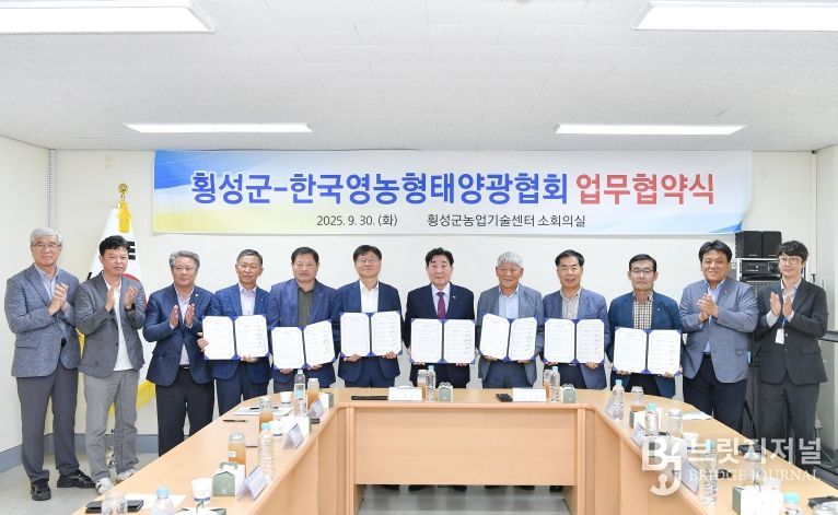 브릿지저널 윤나영 기자 | 횡성군은 횡성군 농업기술센터 소회의실에서 30일 ‘영농형 태양광발전 업무협약’을 체결하고, 농업과 신재생에너지의 조화를 통한 상생 발전에 나섰다.