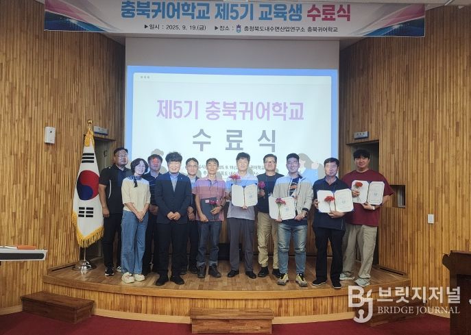 브릿지저널 김경미 기자 | 충청북도내수면산업연구소는 지난 8월 25일부터 9월 26일까지 5주간 운영된 ‘2025년 충북 귀어학교 제5기 교육’을 성공적으로 마무리하고, 총 6명의 수료생을 배출했다고 30일 밝혔다.