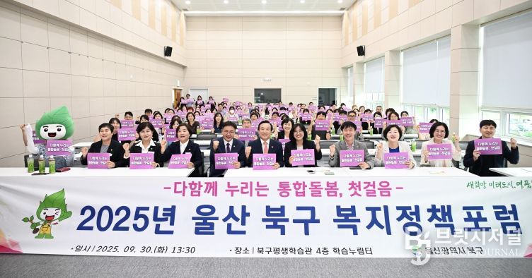 브릿지저널 윤나영 기자 | 울산 북구는 30일 평생학습관에서 '다함께 누리는 통합돌봄 첫걸음'을 주제로 복지정책포럼을 열었다. 이번 포럼은 통합돌봄제도 본격 시행에 앞서 지역 차원의 준비 방향을 모색하고 민관 협력 기반을 강화하기 위해 마련됐다.
