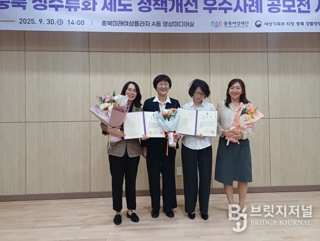 브릿지저널 김경미 기자 | 충북도는 9월 30일 충북미래여성플라자 영상미디어실에서 ‘성인지 정책 유공자 포상 및 성주류화 정책개선 우수사례 시상식’을 개최했다고 밝혔다.