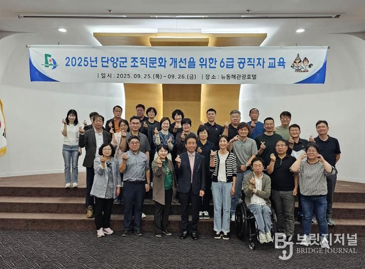 브릿지저널 김경미 기자 | 충북 단양군은 지난 9월 25일부터 26일까지 이틀간 동해시와 강릉시 일원에서 6급 공직자 30여 명을 대상으로 조직문화 개선과 역량 강화를 위한 교육을 실시했다.