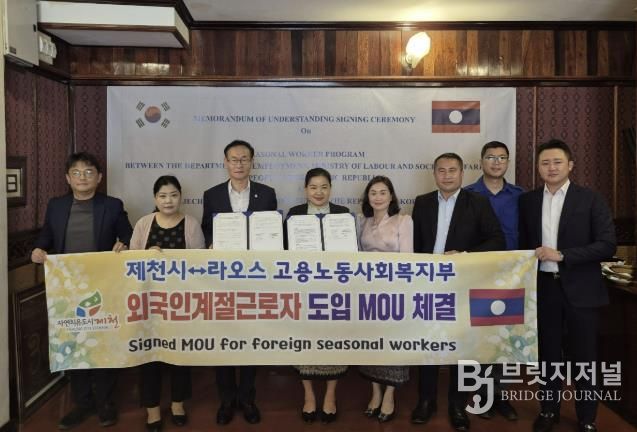 브릿지저널 김경미 기자 | 제천시는 지난 9월 30일 라오스 노동사회복지부와 외국인 계절근로자 도입을 위한 신규 업무협약(MOU) 을 체결했다. 이번 협약은 농번기 원활한 인력 공급을 위해 추진된 것으로, 특히 농촌 인력 공급 국가를 다변화해 불확실성을 최소화하는 데 목적이 있다.