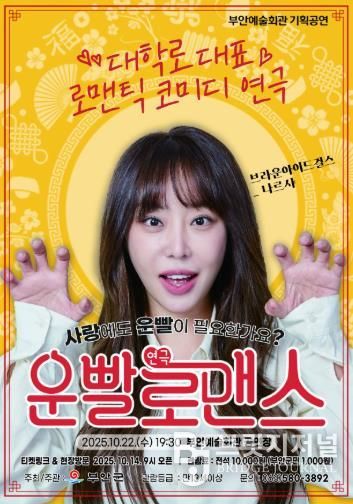브릿지저널 윤나영 기자 | 부안군은 오는 10월 22일 오후 7시 30분, 부안예술회관 공연장에서 연극 ‘운빨로맨스’를 공연한다.
