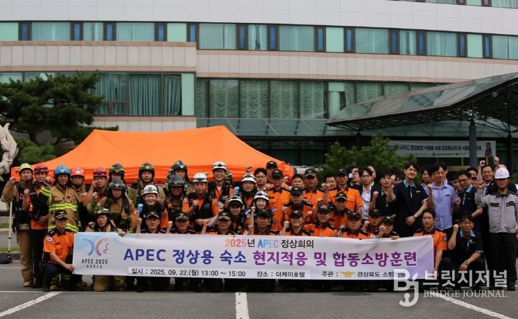 브릿지저널 정보영 기자 | 경상북도 소방본부는 2025년 에이팩(APEC) 정상회의 기간중 소방대원들의 현장 적응력 등 대응역량 강화를 위해 9월부터 추진해 온 합동소방훈련 및 현지적응훈련을 10월 1일 경주화백컨벤션센터 훈련을 끝으로 모두 완료했다고 밝혔다.