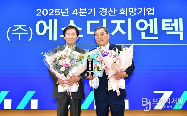 브릿지저널 정보영 기자 | 경산시(시장 조현일)는 (주)에스디지엔텍을 2025년 4분기 경산 희망 기업으로 선정하고 1일 정례회에서 트로피 시상 및 현판 전달식을 가졌다.