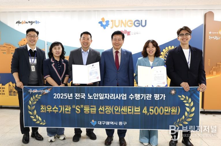 브릿지저널 김진석 기자 | 대구 중구는 중구시니어클럽이 노인일자리사업 수행기관 평가에서 4년 연속 최우수기관으로 선정됐다고 밝혔다.