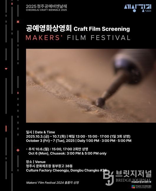 브릿지저널 김경미 기자 | 청주공예비엔날레조직위원회는 10월 3일부터 7일까지 닷새간 문화제조창 동부창고 38동에서 추석 특별 공예영화상영회를 연다.
