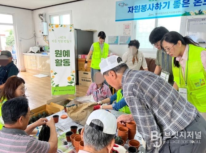 브릿지저널 정보영 기자 | 제주특별자치도사회서비스원은 지난 9월 30일, 성산읍 신풍리경로당에서 어르신들과 함께하는 원예 자원봉사 활동을 실시했다.