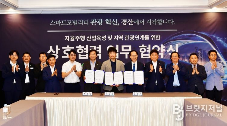 브릿지저널 정보영 기자 | 경산시는 10월 1일, 힐튼호텔 경주에서 ㈜오토노머스에이투지, (재)경북IT융합산업기술원과 함께 '자율주행 산업 육성 및 지역관광 연계를 위한 상호협력 업무협약'을 체결했다.